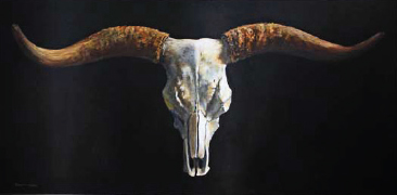 The piece entitled “Icon” represents a buffalo skull that Santiago compares to a mask. “Masks can tell the story of the living thing beneath.” Similarly, the buffalo skull tells the story of the living thing that once was. Be sure to keep an eye out for these paintings when “Graves” premieres in the fall of August 2016. Until then, you can view the aforementioned pieces and many more paintings by Roseta Santiago at Blue Rain Gallery.