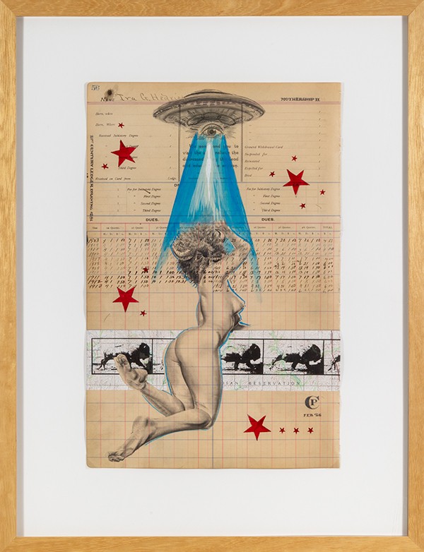 Pencil/graphite and acrylic on railroad company ledger, Image: 17.5"h x 11"w, Frame: 25"h x 19"w, Item No. 23567,