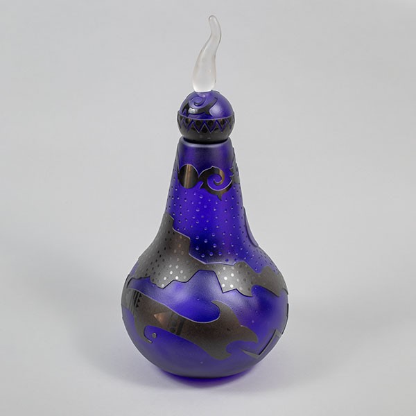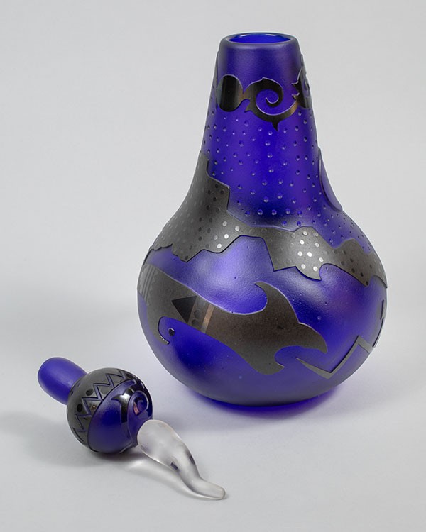 Blown and sand-carved glass, 15"h x 6.5"dia, Item No. 23163,
