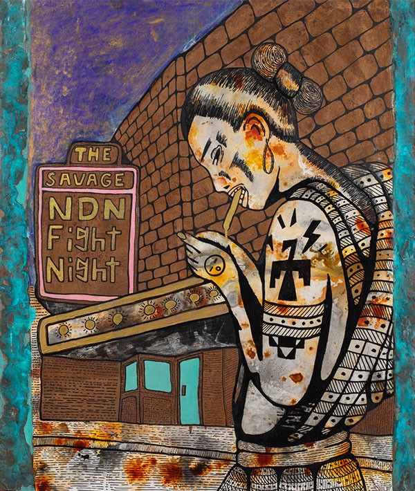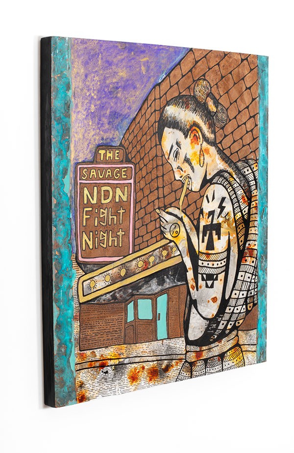 Acrylic, gouache, oxidized copper, oxidized iron and Venetian pigment on panel, 36"h x 30"w, Item No. 23051,
