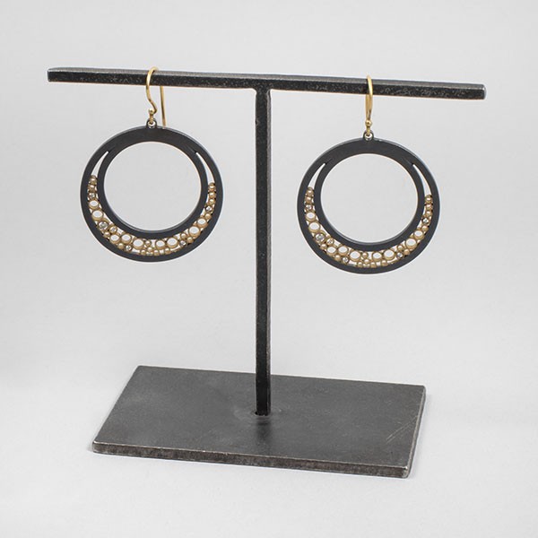 Matte finish sterling silver with 18k yellow gold interior, GVS white diamonds (0.16ct), and handmade 18k yellow gold French hook ear wires, 1.25" diameter each, Item No. 23116,