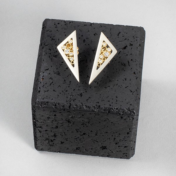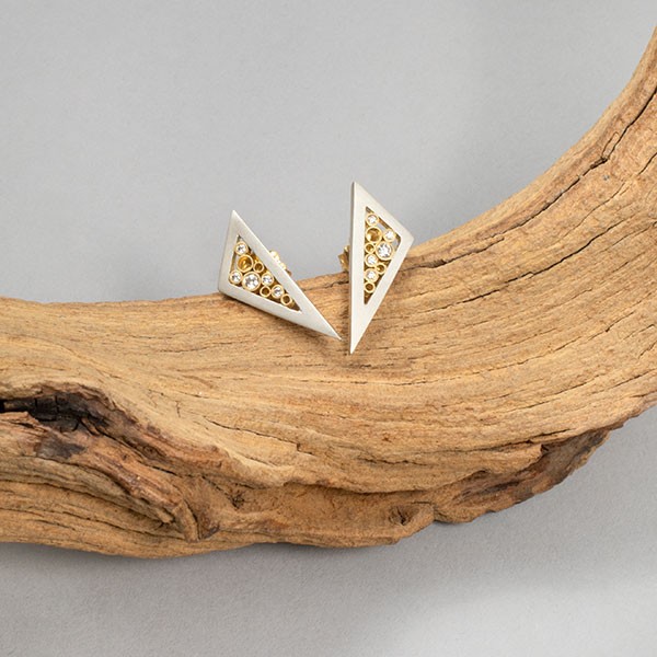 Matte finish sterling silver with 18ky gold interior and GVS white diamonds (0.14ct) 18ky gold post and backing, 1" length each, Item No. 23111,