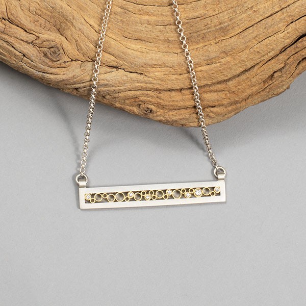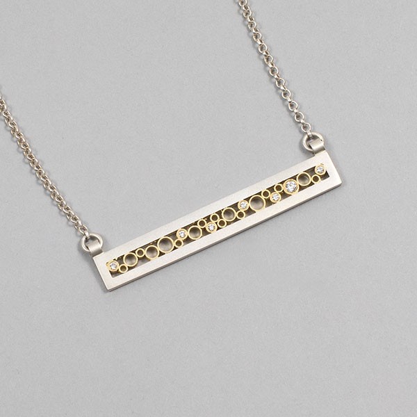Matte finish sterling silver with 18ky gold interior and GVS white diamonds (0.09ct), 1.75" length, 16-18" adjustable chain and clasp, Item No. 23099,