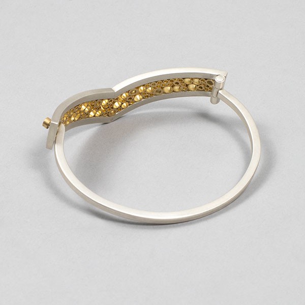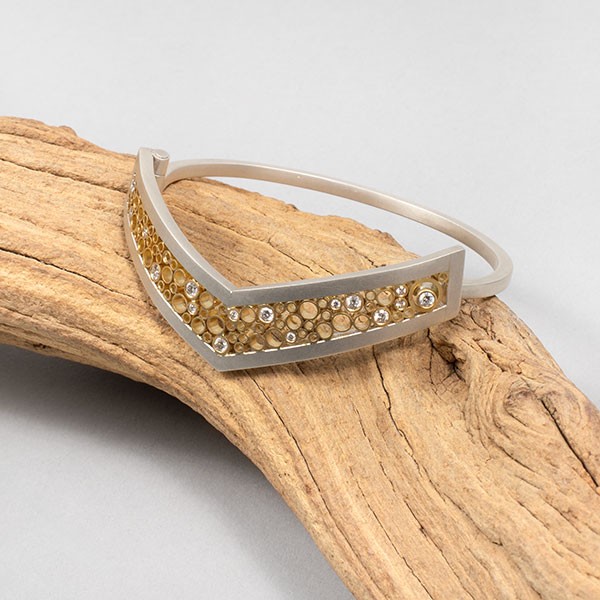 Matte finish sterling silver with 18ky gold interior and GVS white diamonds (0.32ct), 7"dia, Item No. 23127,