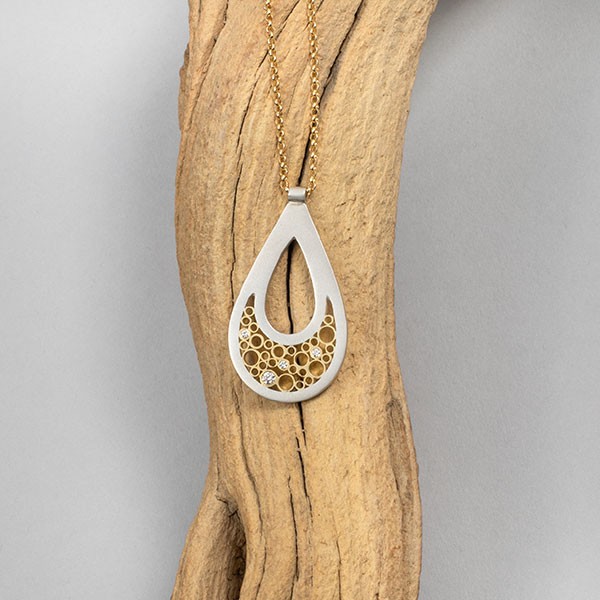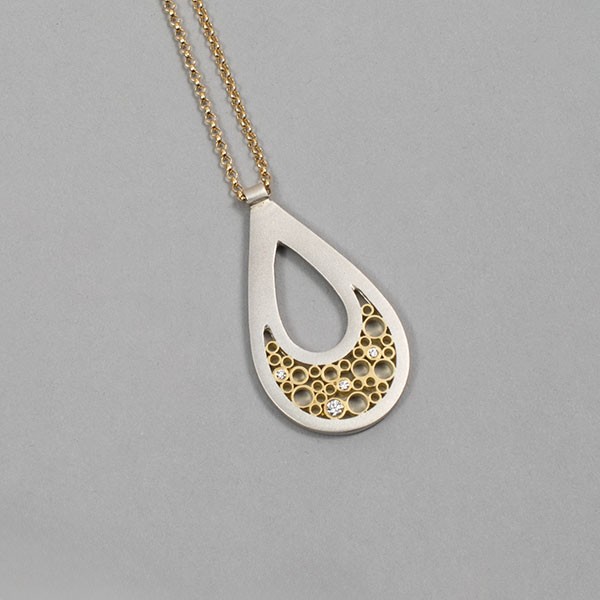 Matte finish sterling silver with 18ky gold interior and GVS white diamonds (0.06ct) 18ky gold chain and clasp, 1" length, 18" chain, Item No. 23103,