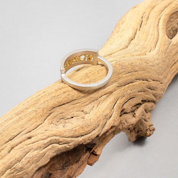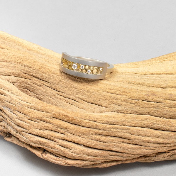 Matte finish sterling silver with 18ky gold interior and GVS white diamonds (0.07ct), Size 9, Item No. 23120,