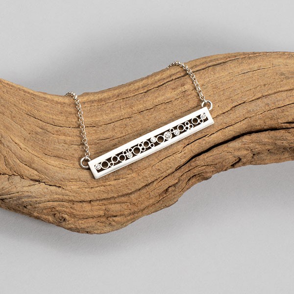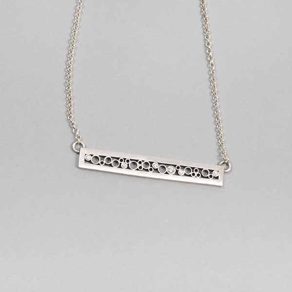 Satin finish sterling silver with oxidized interior and GVS diamonds (0.08ct), 1.75"length, 16-18" adjustable chain and clasp, Item No. 23096,