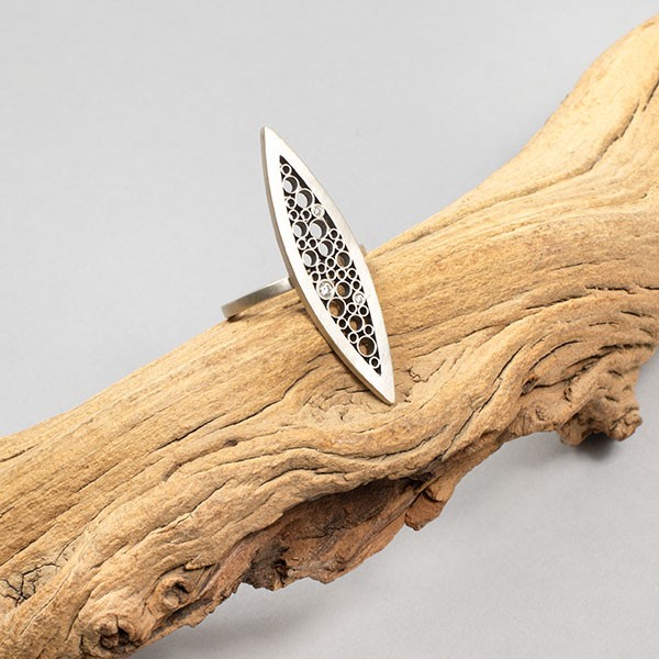 Satin finish sterling silver with oxidized interior and GVS diamonds (0.05ct), 1.75" length, Size 8.5, Item No. 23122,