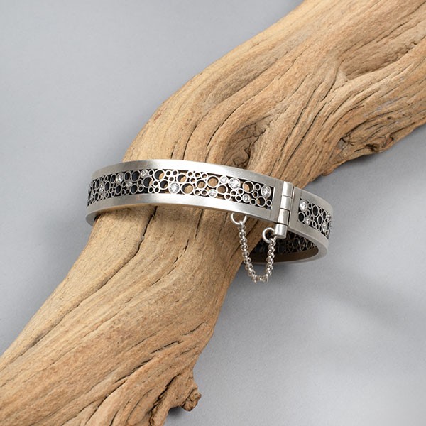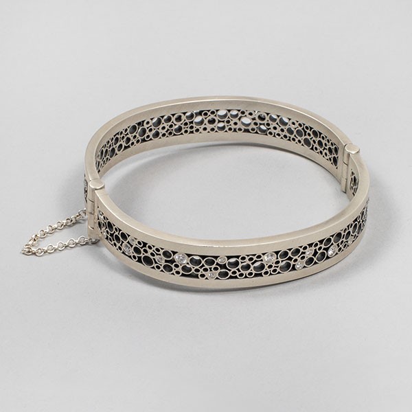 Satin finish sterling silver with oxidized interior and GVS diamonds (0.60ct), 7"dia, Item No. 23128,