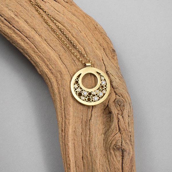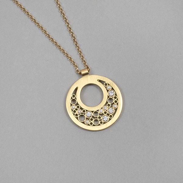 Satin finish 18k yellow gold with GVS white diamonds (0.19ct) with 18ky gold chain and clasp, 1" length, 16-18" adjustable chain and clasp, Item No. 23106,