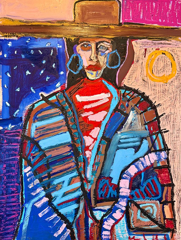 Oil and oil stick on panel, 40"h x 30"w, Item No. 23327,