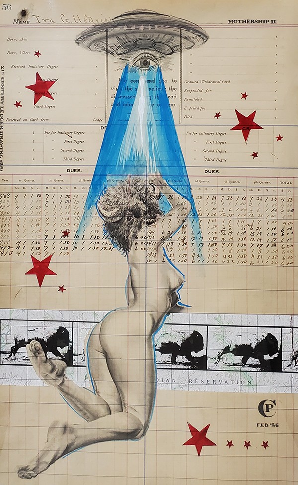 Pencil/graphite and acrylic on railroad company ledger, Image: 15"h x 11"w, Frame: 21.25"h x 17.25"w, Item No. 23567,