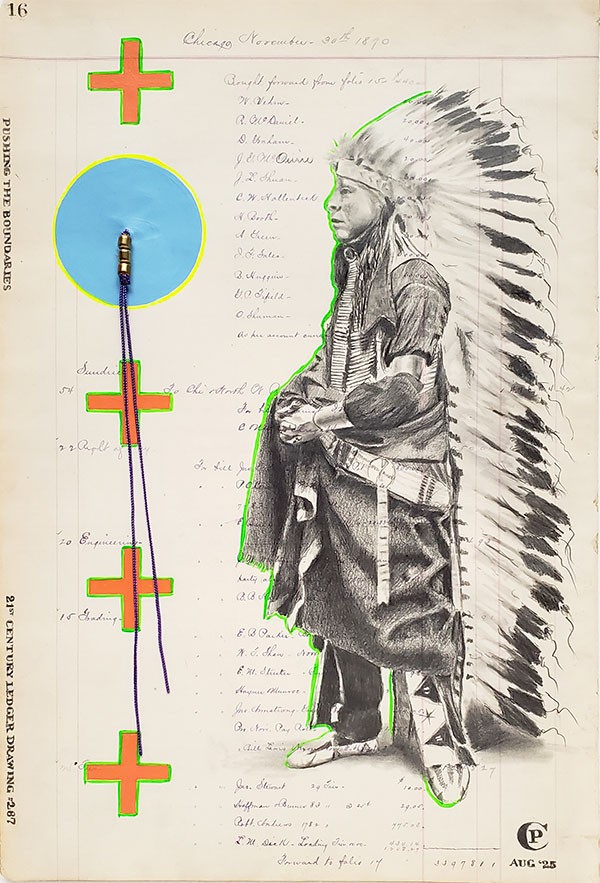 Pencil/graphite and acrylic on railroad ledger, Image: 16"h x 10"w, Frame: 21.5"h x 17.5"w, Item No. 23173,
