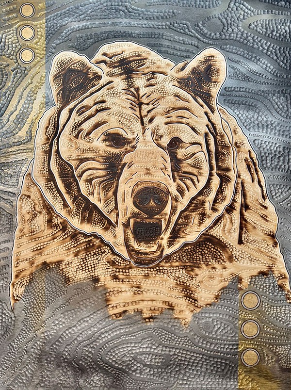 Mixed Media, wood, wood carving, wood burning, and paint, 49.5"h x 37.75"w, Item No. 23328,