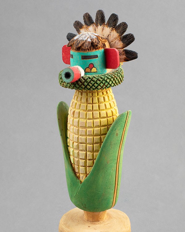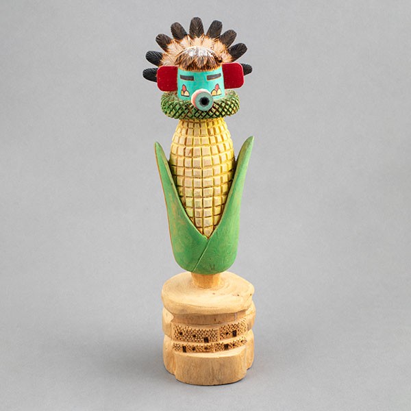 Carved cottonwood root with natural pigments, 9.75”h x 2.5”w x 2.5”d, Item No. 22883,