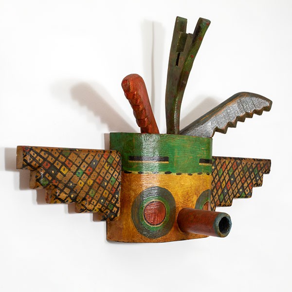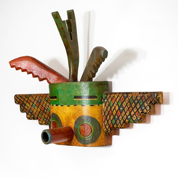 Painted and carved wood, 18"h x 28.5"w x 7"d, Item No. 23368,