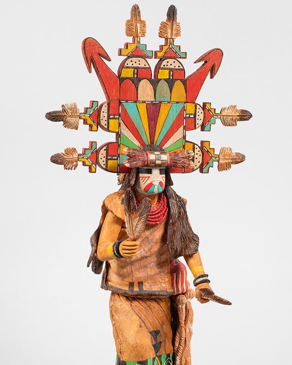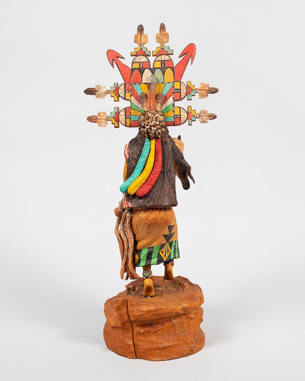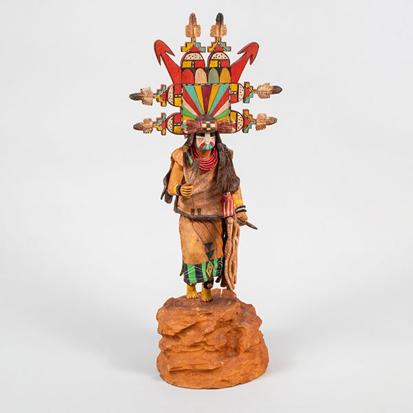 Carved cottonwood root with pigments, 16”h x 6”w x 6”d, Item No. 22986,