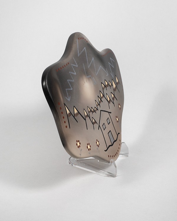 Natural clay with pigments and acrylic paint, 5.75"h x 7.5"w, Item No. 23513,