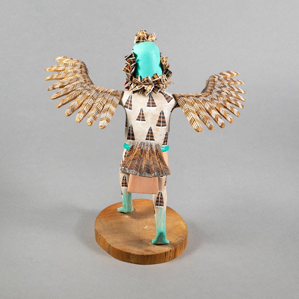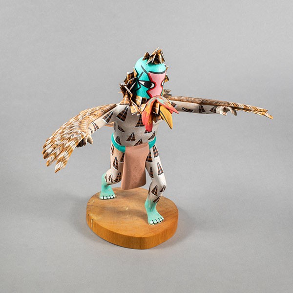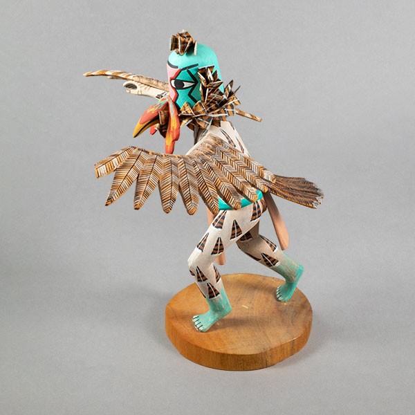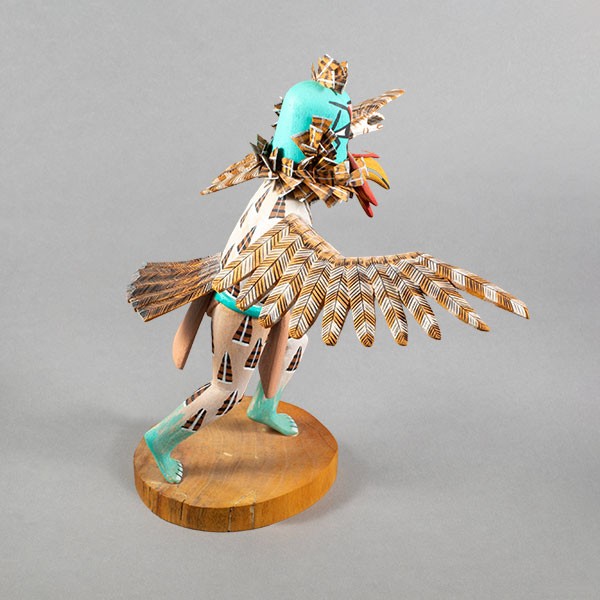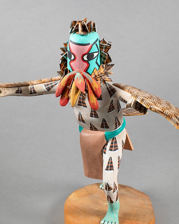 Carved cottonwood root with pigments, 10.5”h x 7.5”w x 12”d, Item No. 22977,