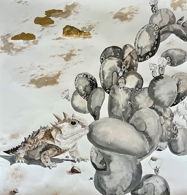 Sumi ink, rust and gold leaf, 54.5"h x 51"w, Item No. 23341,