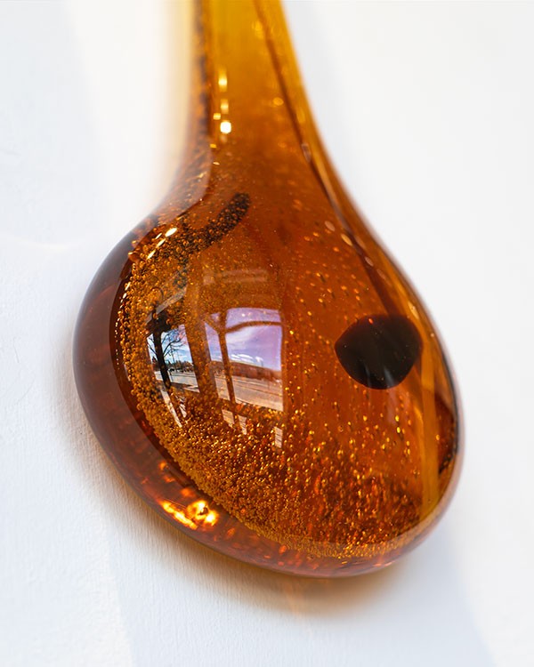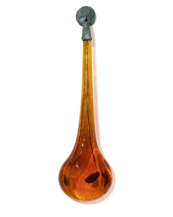 Sculpted glass with inclusions, enamel decals, bronze, steel, Approximately: 19"h x 5"w x 2"d, Item No. 23575,