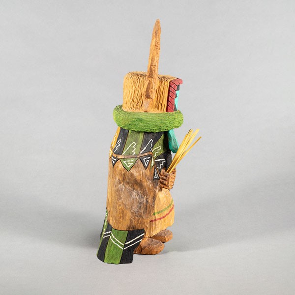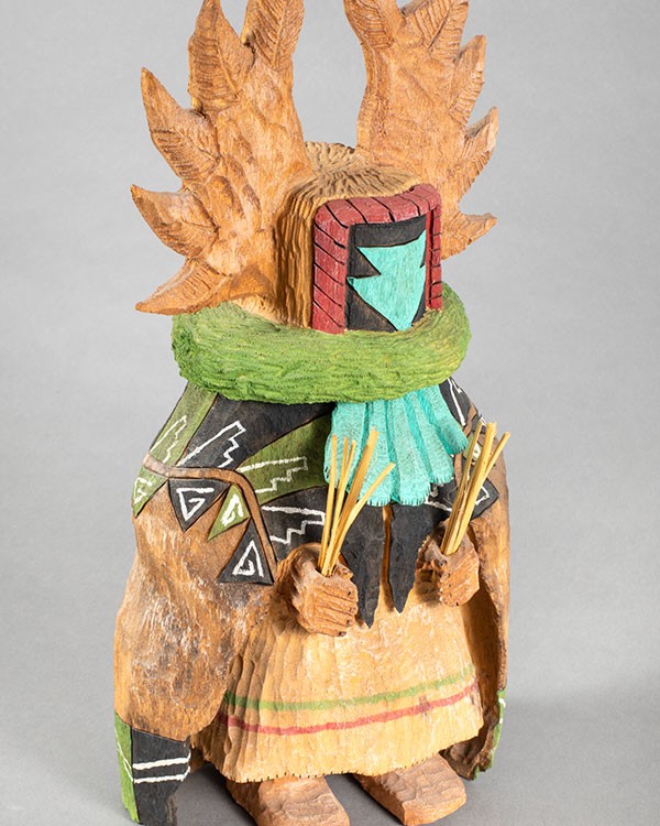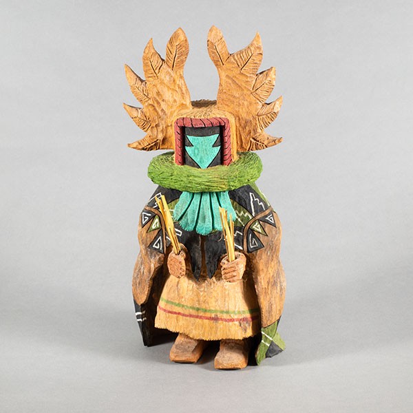 Carved cottonwood root with pigments, 12.25”h x 5.5”w x 6”d, Item No. 23007,