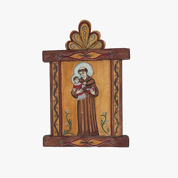 Retablo; carved wood with pigments, 12”h x 8.25”w, Item No. 22904,