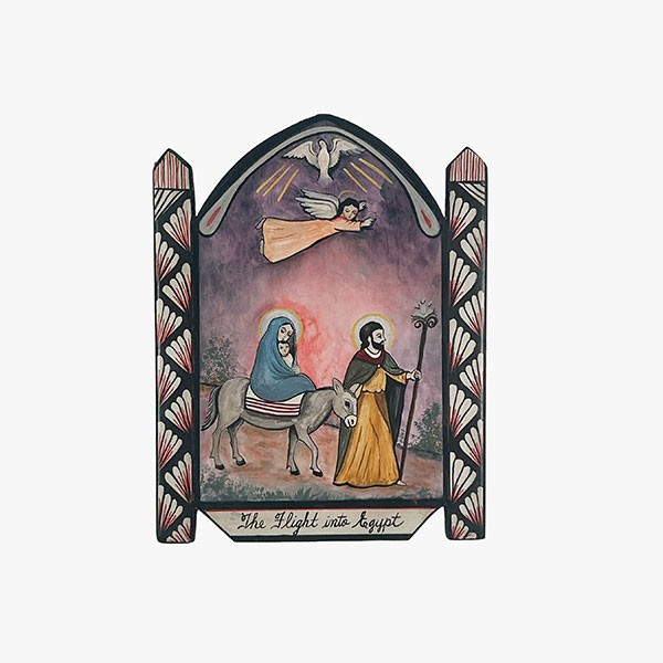 Retablo; carved wood with pigments, 11”h x 8.5”w, Item No. 22905,