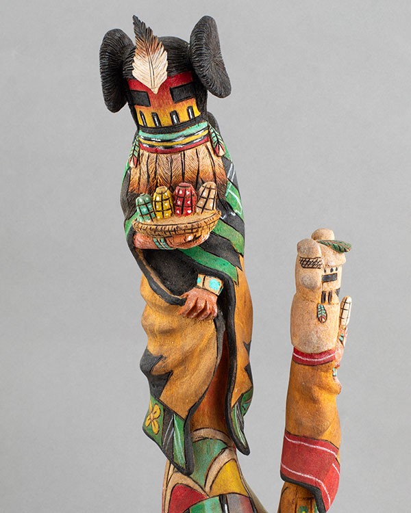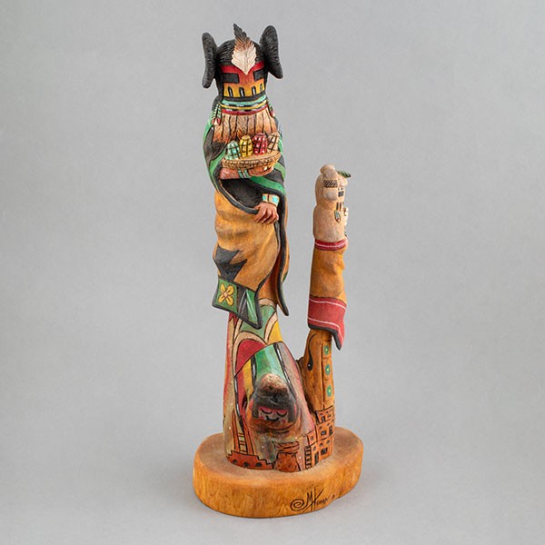 Carved cottonwood root with natural pigments, 13.5”h x 3.5”w x 4”d, Item No. 22892,