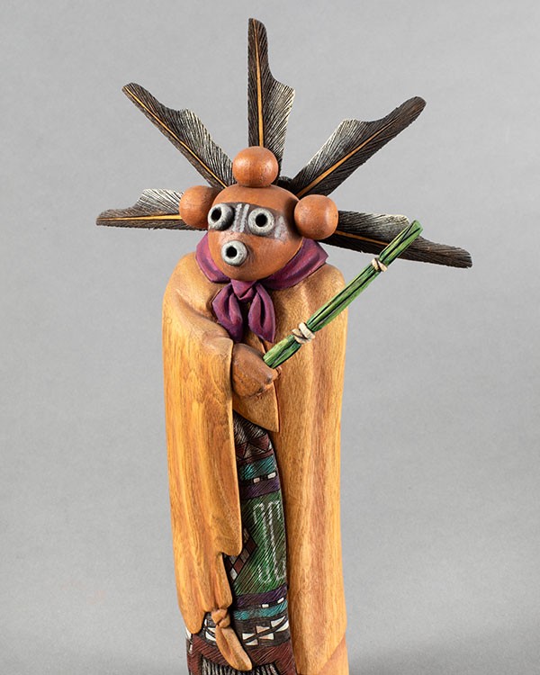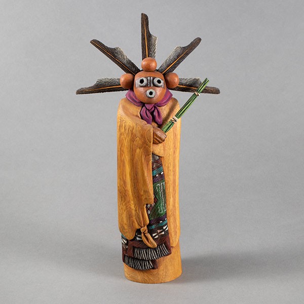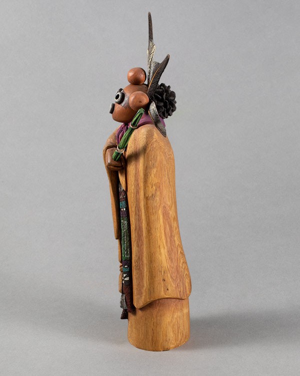 Carved cottonwood root with pigments, 10”h x 2.25”w x 6”d, Item No. 22967,