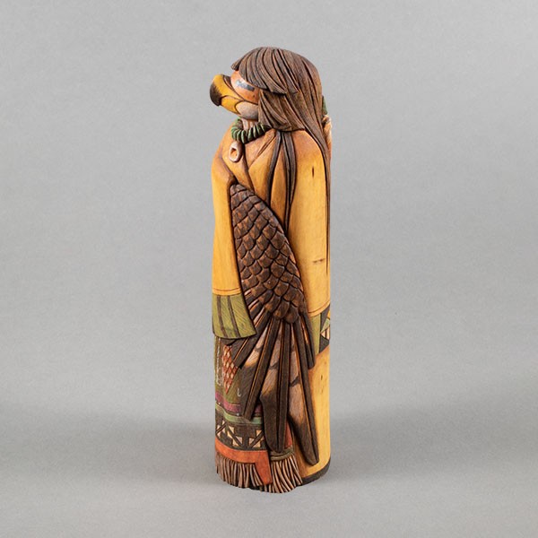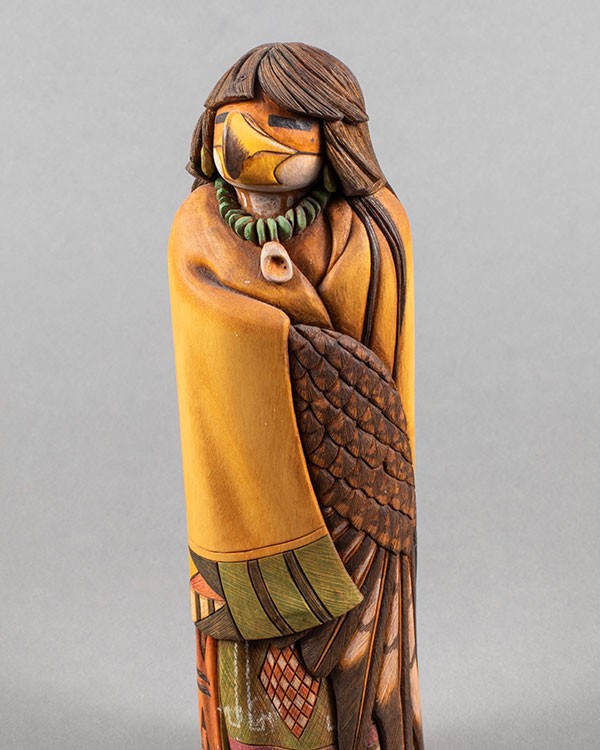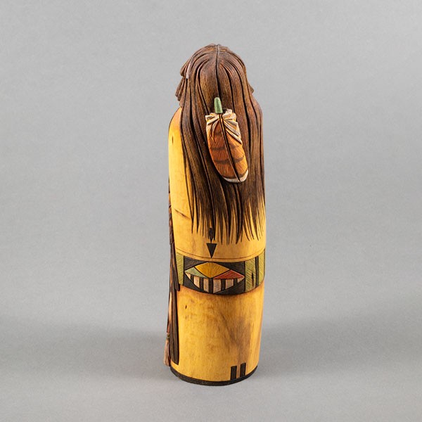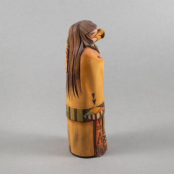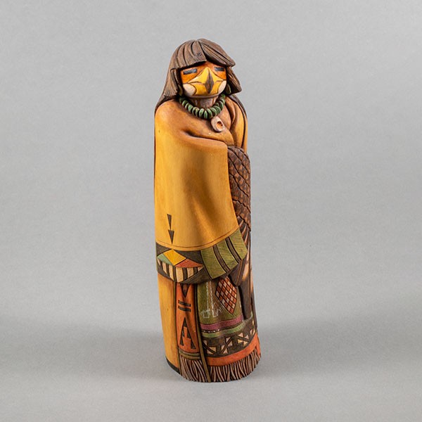 Carved cottonwood root with pigments, 9”h x 2.5”w x 3”d, Item No. 22972,