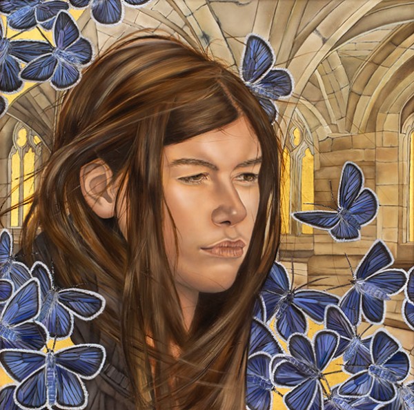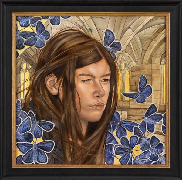 Oil and gold leaf on aluminum panel, Image: 20"h x 20"w, Frame: 24"h x 24"w, Item No. 23283,
