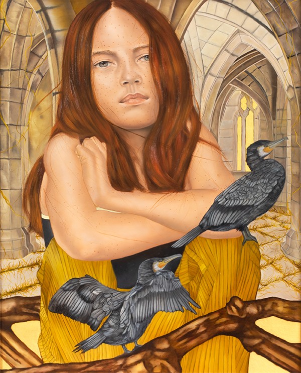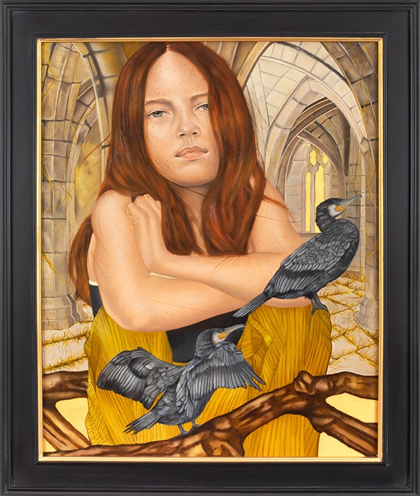 Oil and gold leaf on panel, Image: 30"h x 24"w, Frame: 36"h x 30"w, Item No. 22821,