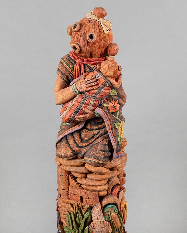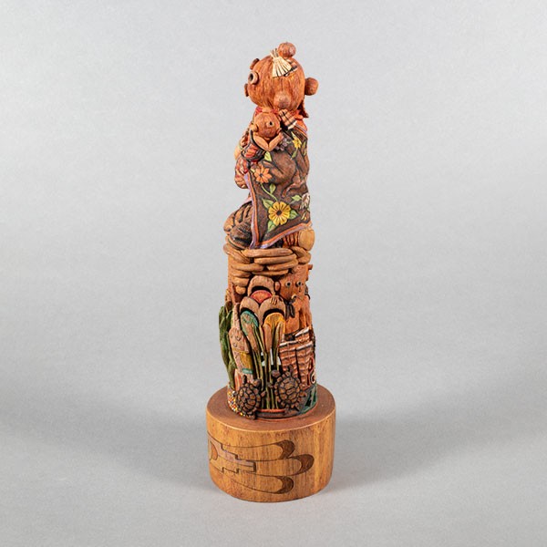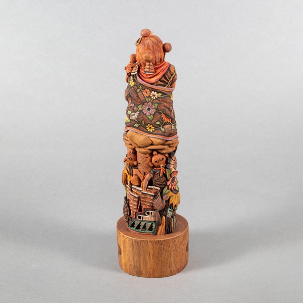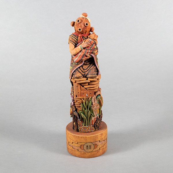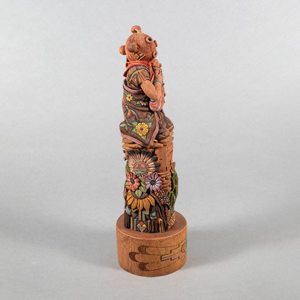 Carved cottonwood root with pigments, 9”h x 2.5”w x 2.5”d, Item No. 22982,