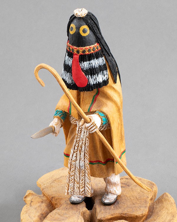 Carved cottonwood root with natural pigments, 6.5”h x 4.5”w x 4”d, Item No. 22893,