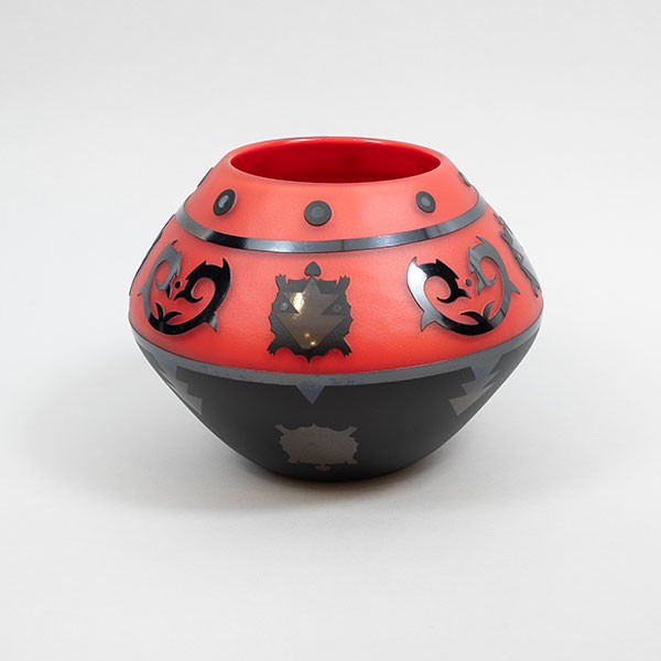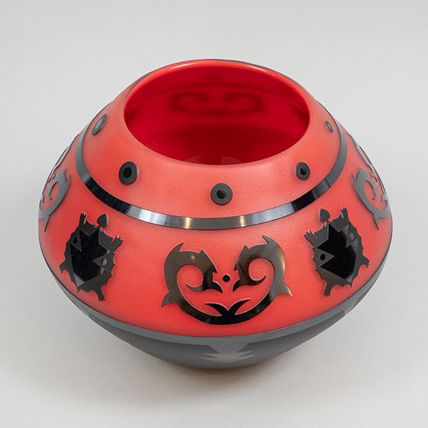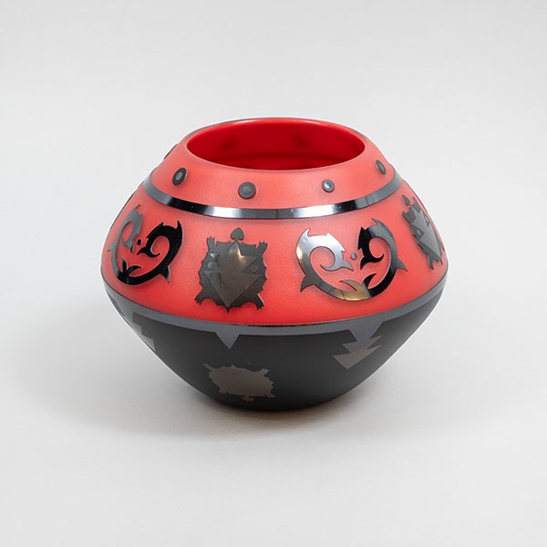 Blown and sand-carved glass, 6.5"h x 7.5"dia, Item No. 23177,