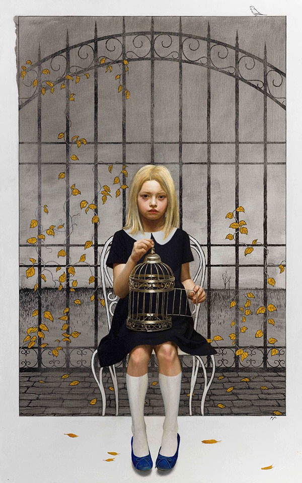 Oil and ink on linen, Image: 48"h x 30"w, Frame: 55"h x 37"w, Item No. 22793,