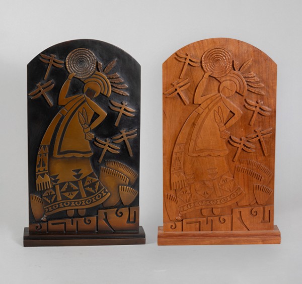 Bronze with patinas, AP 1/5 & Wood, Each: 14”h x 8”w x 2.5”d, Item No. 23469,