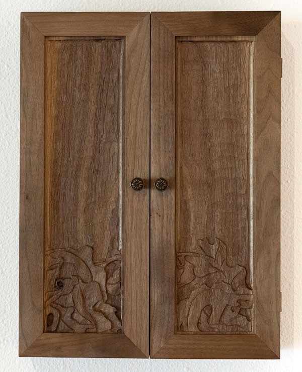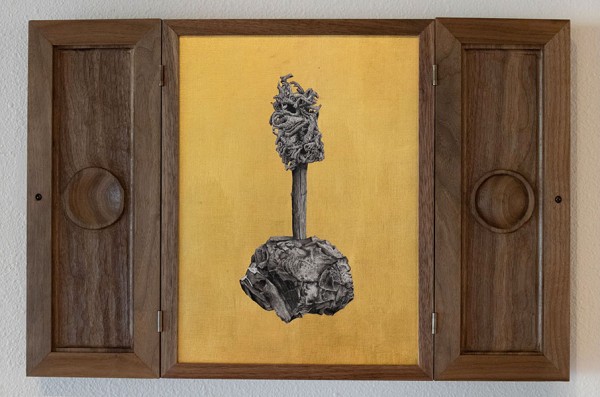 Ink painting, gold leaf on panel, walnut, 17"H x 26"W, Item No. 23350,