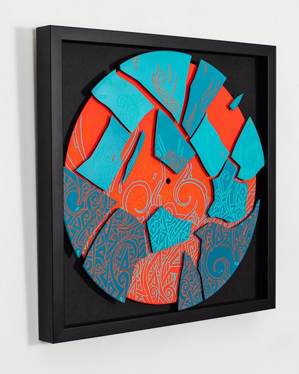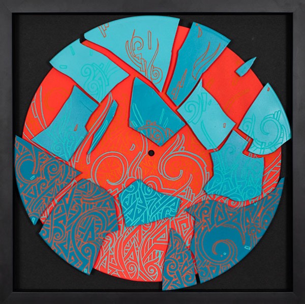 Spray paint and oil on vinyl record, 14"h x 14"w, Item No. 23157,