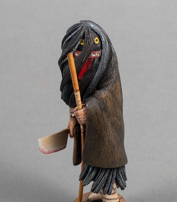 Carved cottonwood root with pigments, 5.5”h x 2”w x 1.75”d, Item No. 22960,