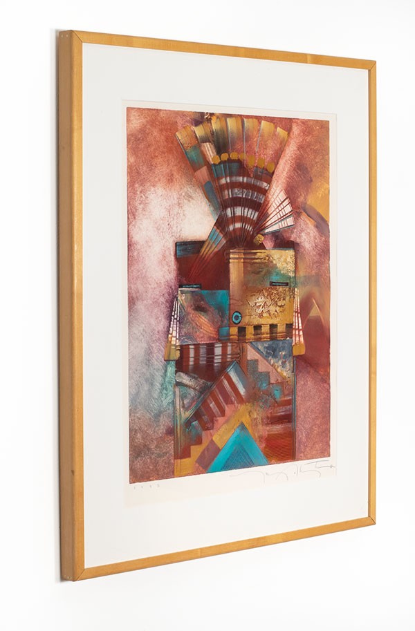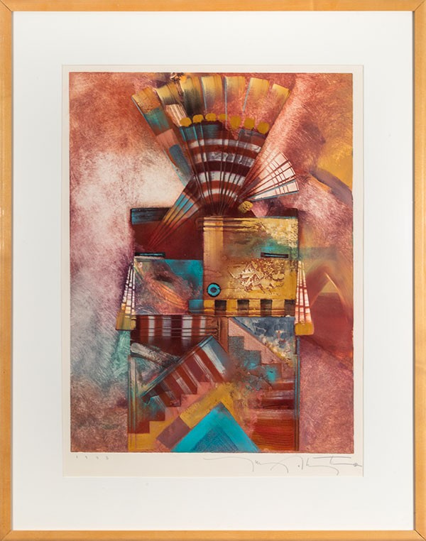 Mixed media, oil and sand on paper, Image: 26”h x 19”w, Frame: 34”h x 26.5”w, Item No. 23022,