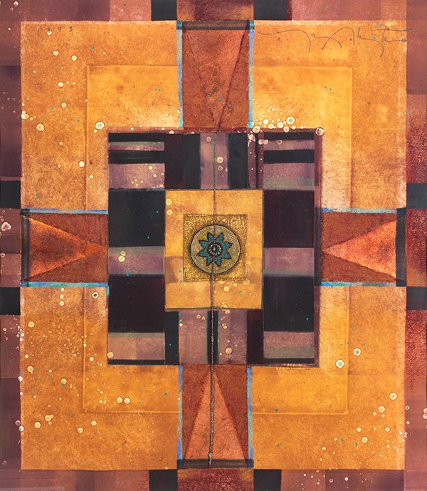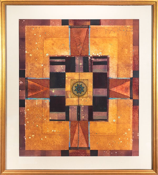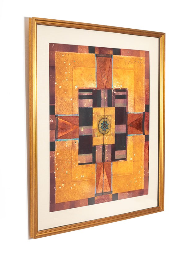 Monotype, sand, beads and wood, Image: 34"h x 29"w, Frame: 42.5"h x 38"w, Item No. 23320,