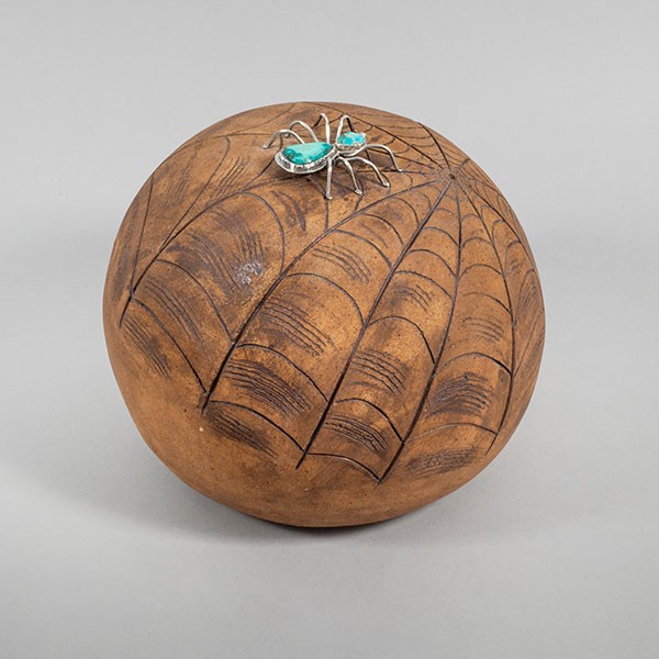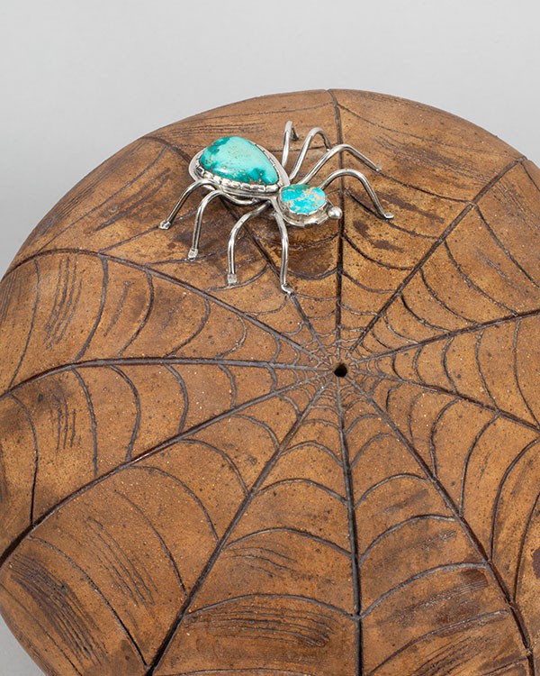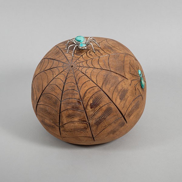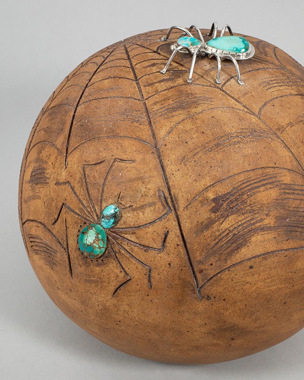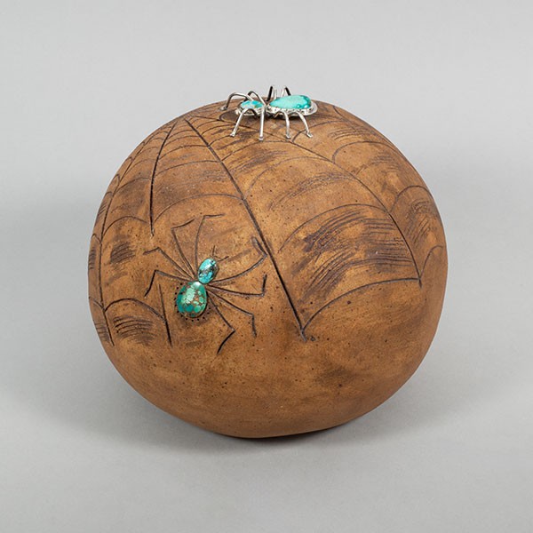 Natural clay, sterling silver and turquoise, 8"h x 9.5"dia, Item No. 23322,
