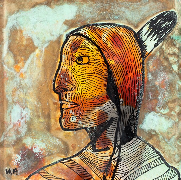 Acrylic and ink on clay board, Image: 6"h x 6"w, Frame: 7"h x 7"w, Item No. 23415,