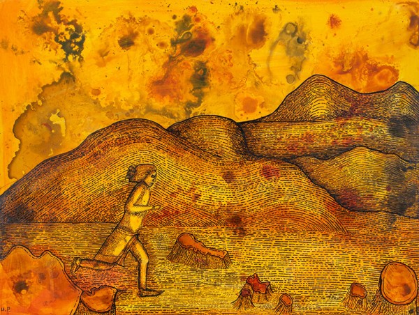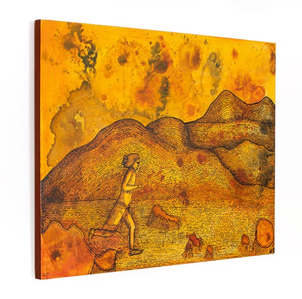 Acrylic, ink and gouache on panel, 18"h x 24"w, Item No. 23184,