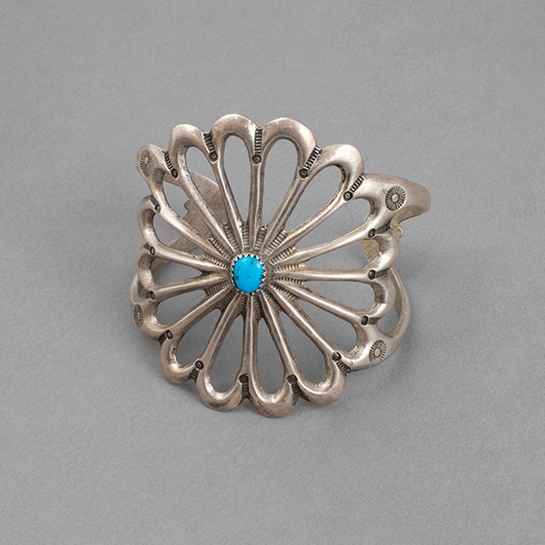 Sterling silver and turquoise, 5.25"dia, 1.25" opening, 2.5"w, Item No. 23235,