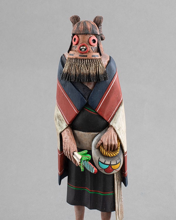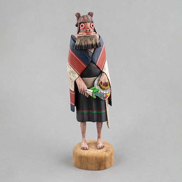 Carved cottonwood root with natural pigments, 9.25”h x 2.5”w x 2.5”d, Item No. 22886,