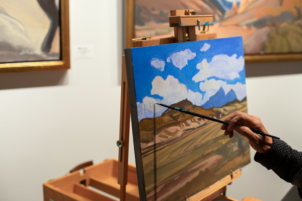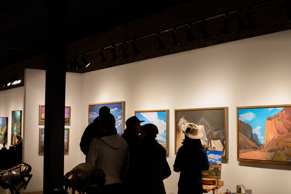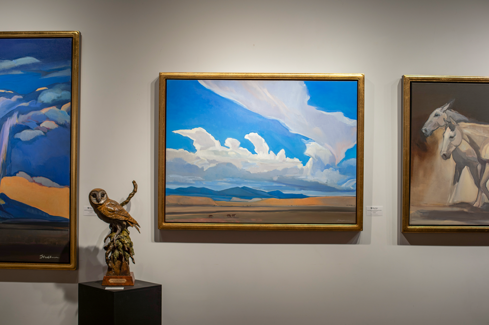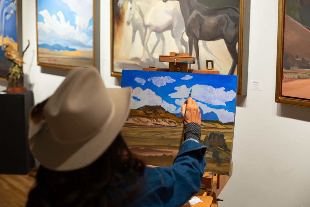 The evening was filled with lively, thoughtful conversation as Stedham worked on a painting live in the gallery, offering guests a rare glimpse into her creative process. Her latest body of work features striking mesas and horses set against the dramatic landscapes of northern New Mexico and southern Colorado.