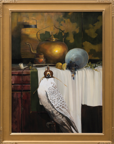 Another work that will appear in the upcoming television series is called, “The Collector.” This piece is filled with possessions that Roseta has collected over the years from various parts of the world. The most emblematic portion of this painting is the Peregrine falcon, a species known for its own role as a collector, which sits in the very center of the piece. Santiago chose to include the falcon, not only for the symbolism but, “in an effort to give a still life some sort of life.”